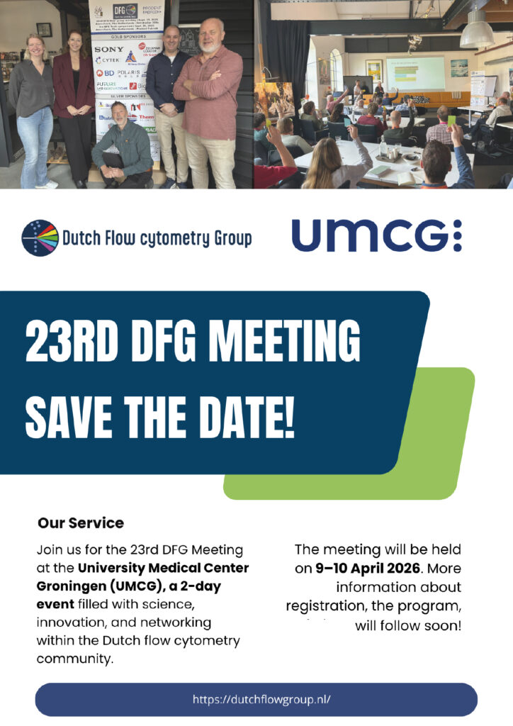 Join us for the 23rd DFG Meeting at the University Medical Center Groningen (UMCG), a 2-day event filled with science, innovation, and networking within the Dutch flow cytometry community.